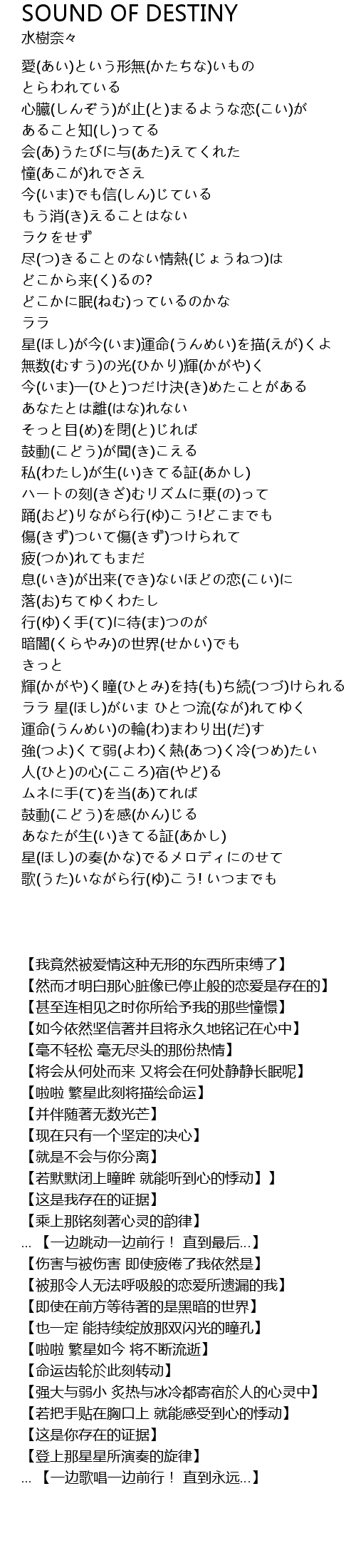 | Song | SOUND OF DESTINY |