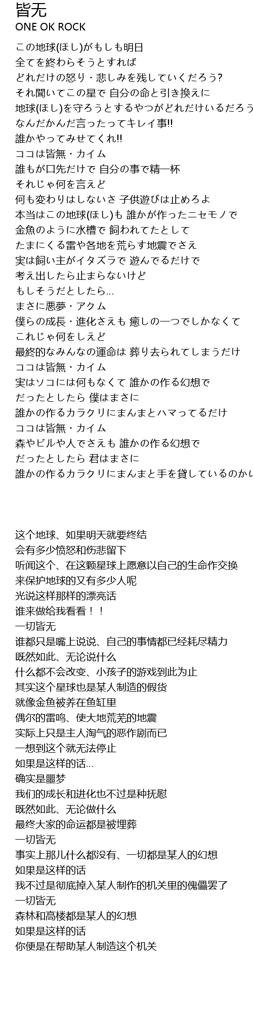 | [00:56.450] | 誰もが口先だけで 自分の事で精一杯 |
