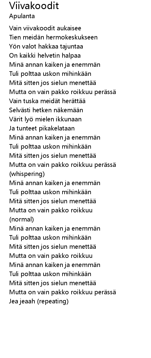 | Song | Viivakoodit |