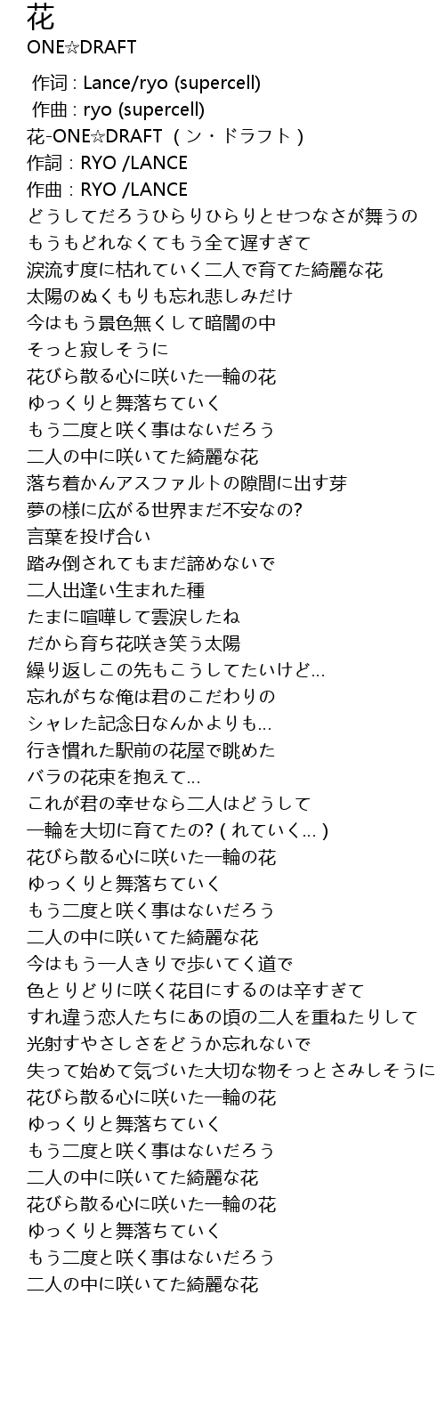 | [00:00.00] | 花-ONE☆DRAFT (ン・ドラフト) |
