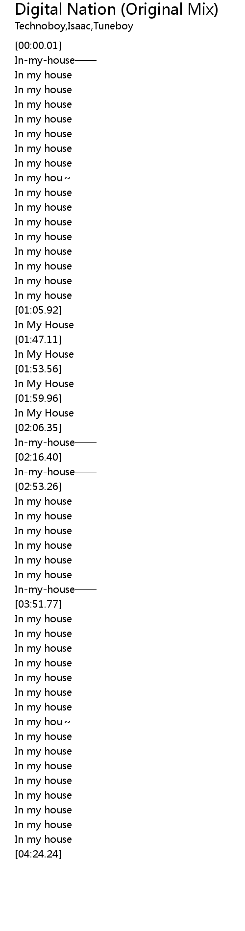 | [03:44.15] | Inmyhouse |