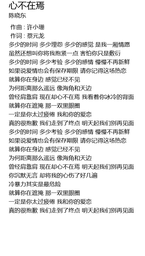 | [02:45.539] | duo shao de shi jian duo shao kao yan duo shao de gan qing man man bu zai xin xian |