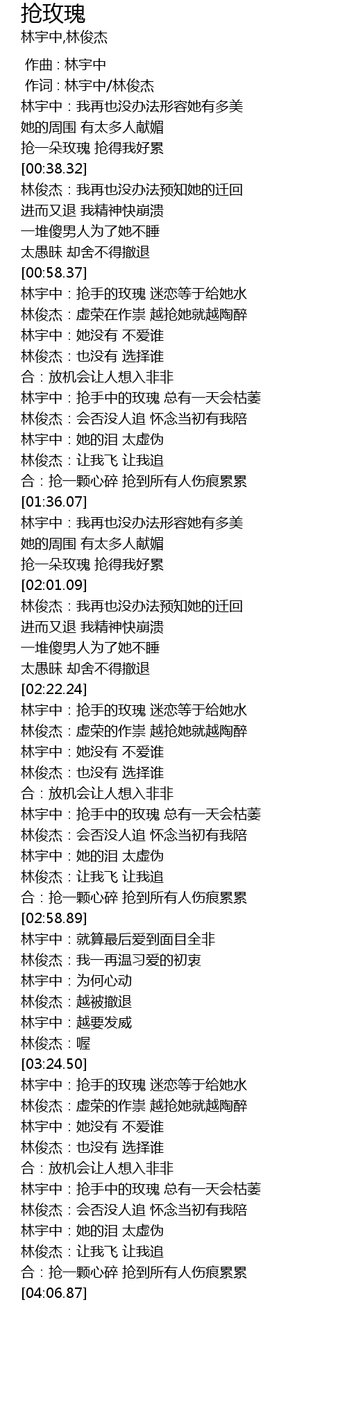 | [03:43.77] | 林宇中:抢手中的玫瑰 总有一天会枯萎 |