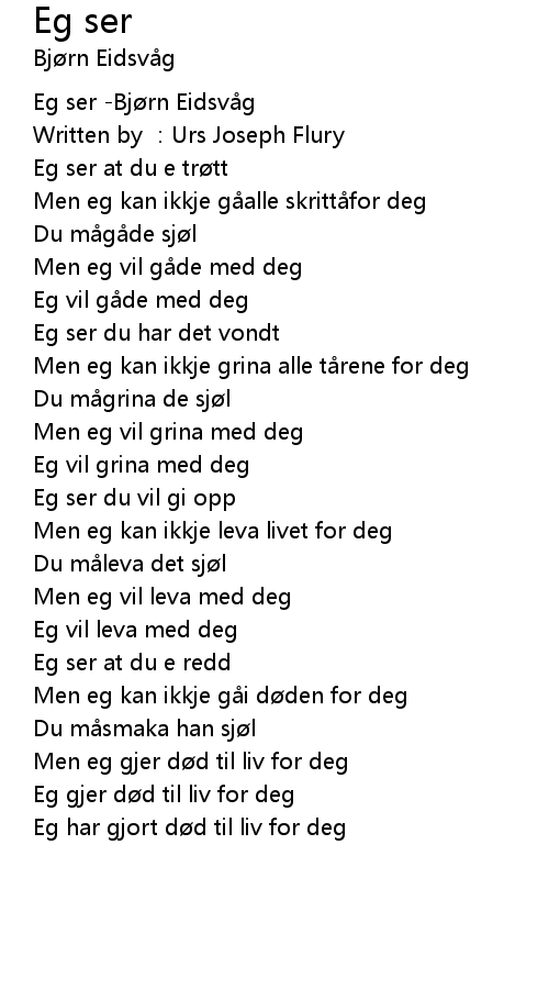 | [00:00.311] | Eg ser -Bjørn Eidsvåg |