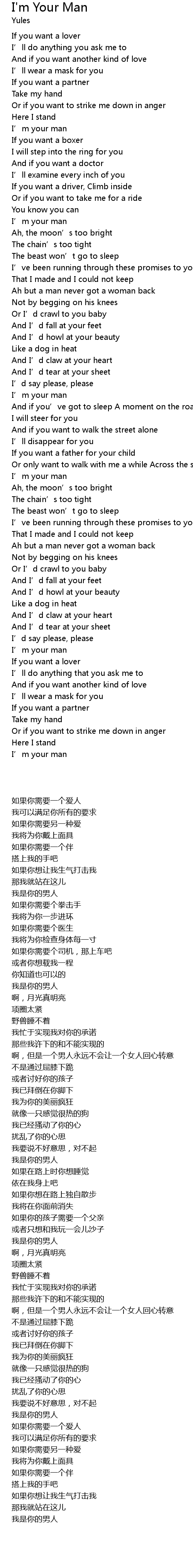 | [00:35.813] | I' m your man |