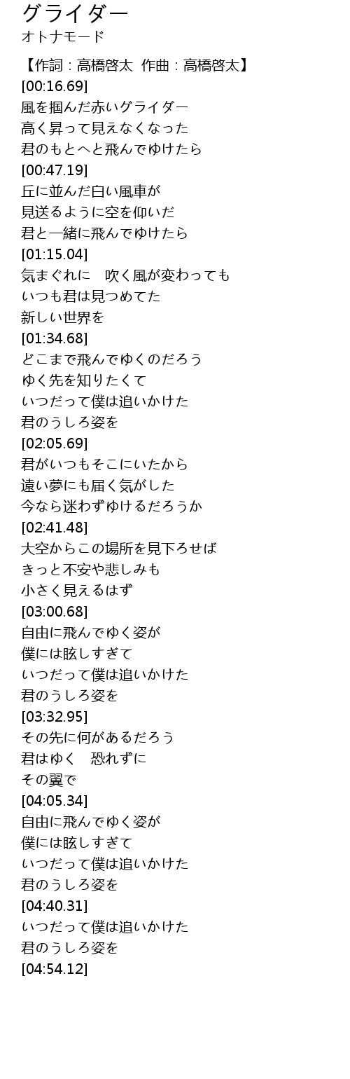| [00:24.73] | 風を掴んだ赤いグライダー |