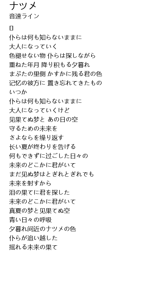 | Song | ナツメ |
