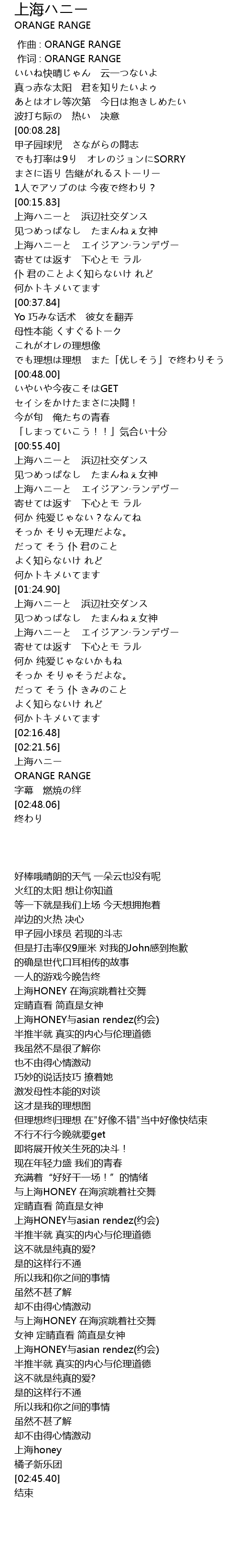 | [00:00.25] | 作词 : ORANGE RANGE |