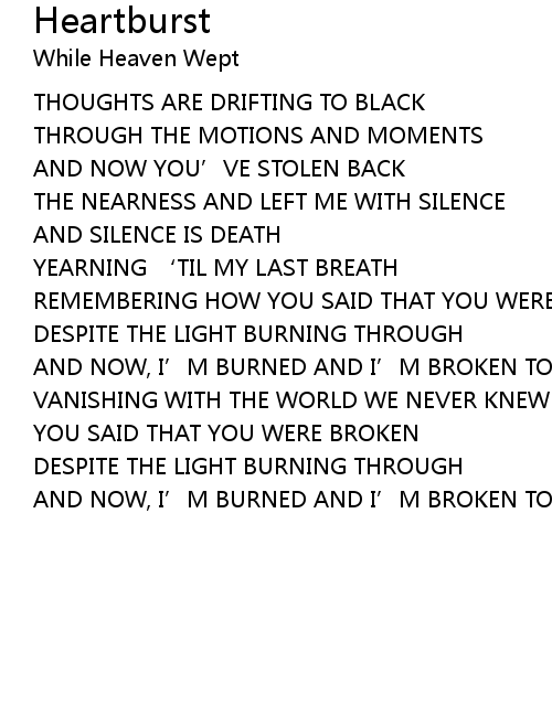| AND NOW, I' M BURNED AND I' M BROKEN TOO |