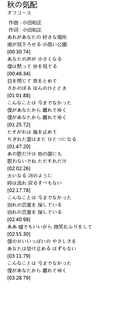 | [00:00.00] | 作曲 : 小田和正 |