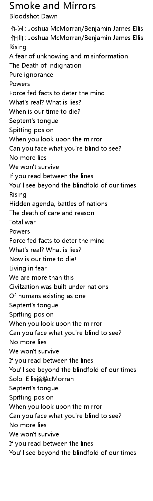 | [00:00.000] | 作词 : Joshua McMorran/Benjamin James Ellis |