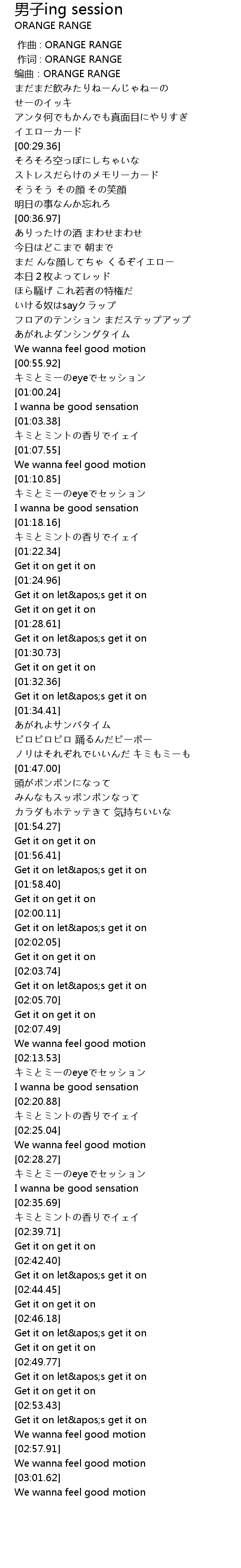 | [00:00.11] | 作词 : ORANGE RANGE |