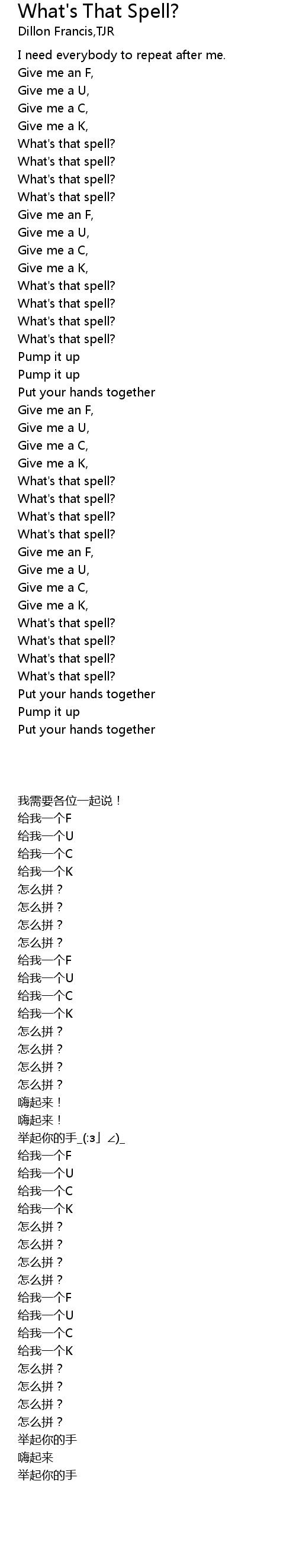 | [00:45.10] | Give me an F, |