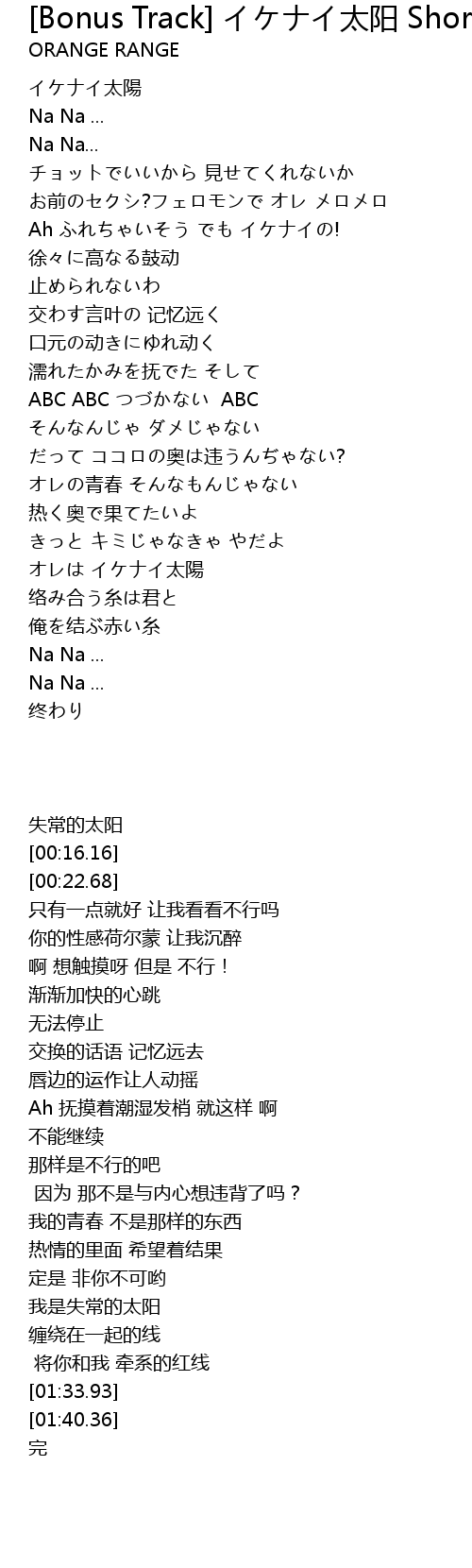 | [01:23.37] | オレは イケナイ太陽 |