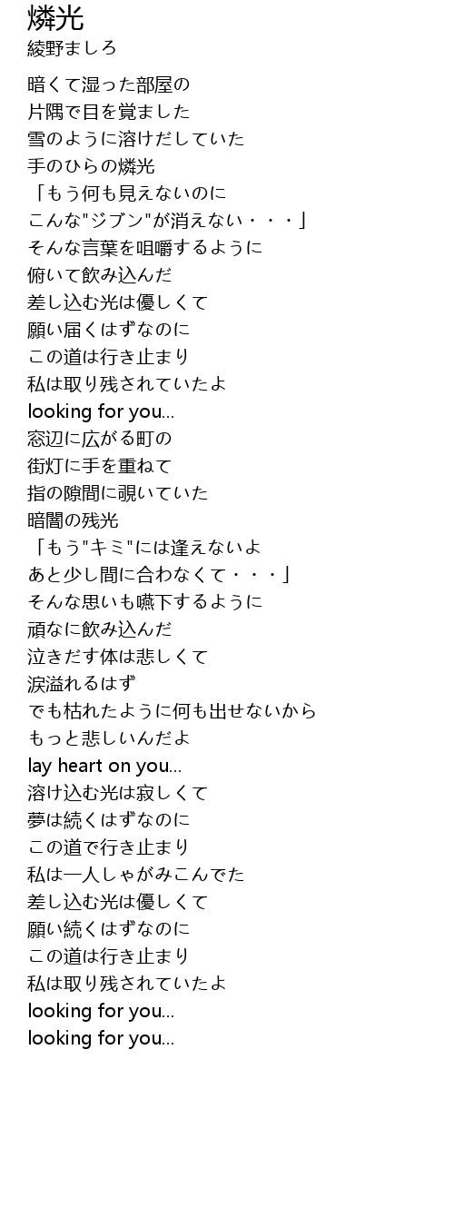 | 「もう何も見えないのに こんな"ジブン"が消えない・・・」 | |
