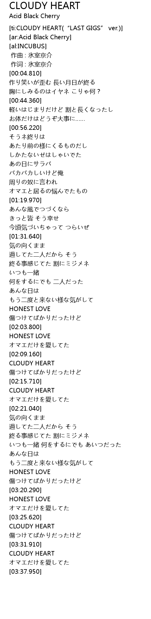 | [ti:CLOUDY HEART(“LAST GIGS” ver.)] | |