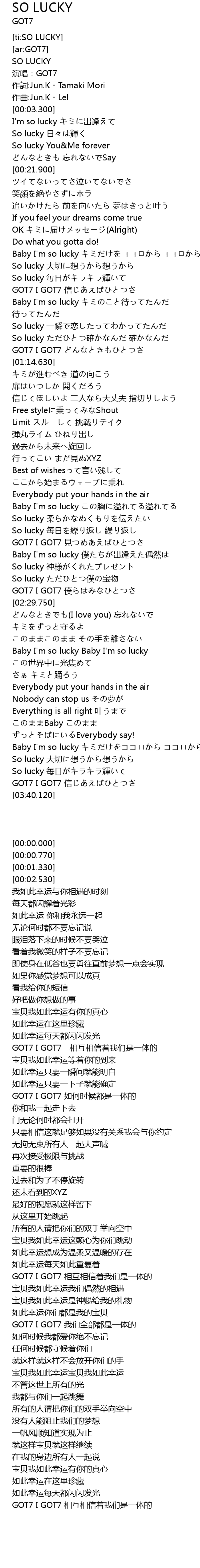 | [00:00.000] | SO LUCKY |