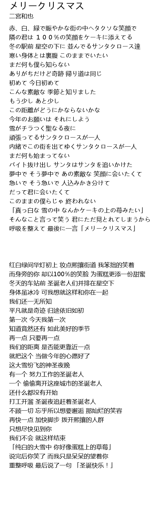 | [00:56.07] | 冬の駅前 星空の下に 並んでるサンタクロース達 |