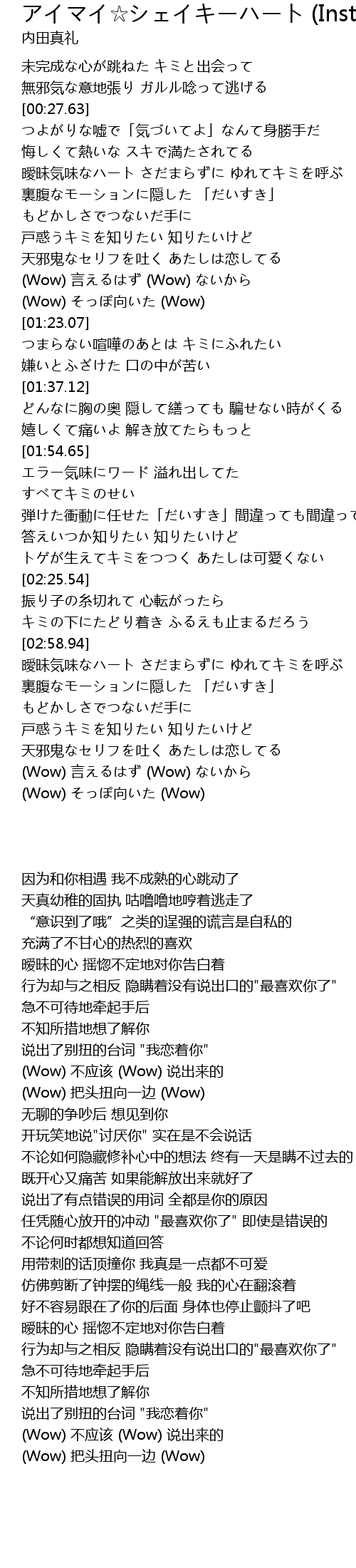| Song | アイマイ☆シェイキーハート (Instrumental) |
