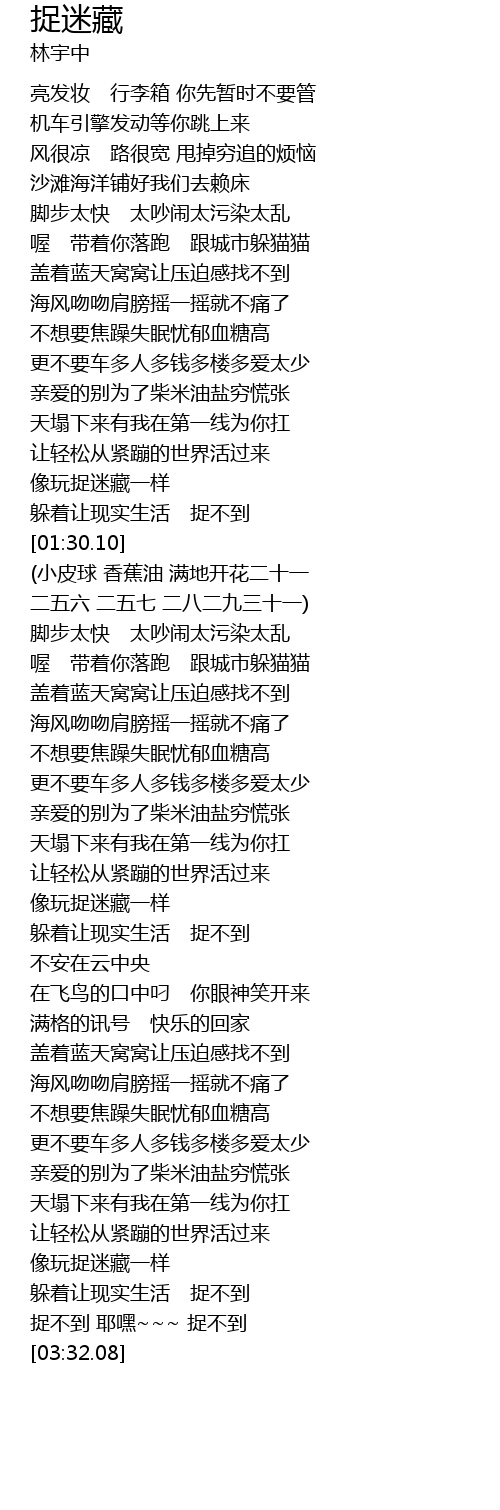 | [03:26.13] | 捉不到 耶嘿~~~ 捉不到 |