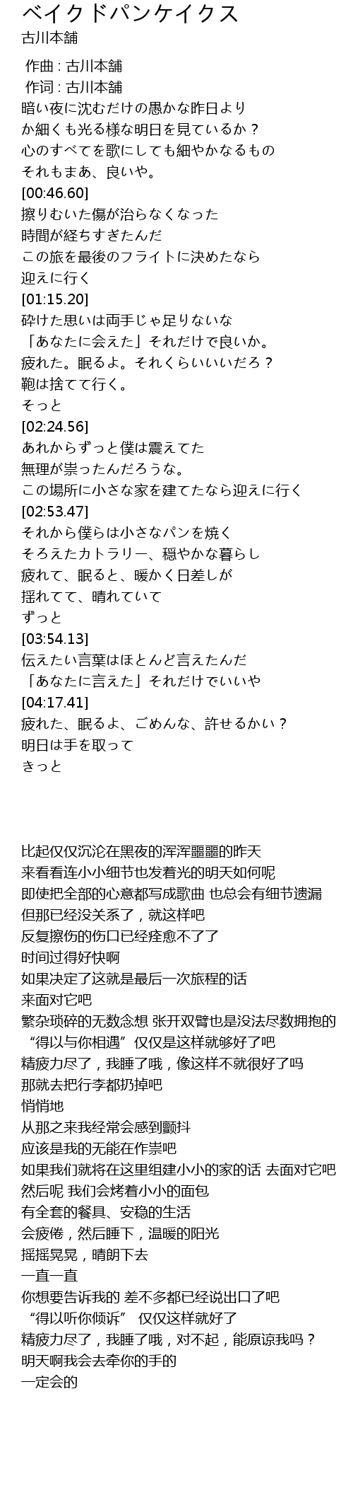 | [00:01.00] | 作词 : 古川本舗 |