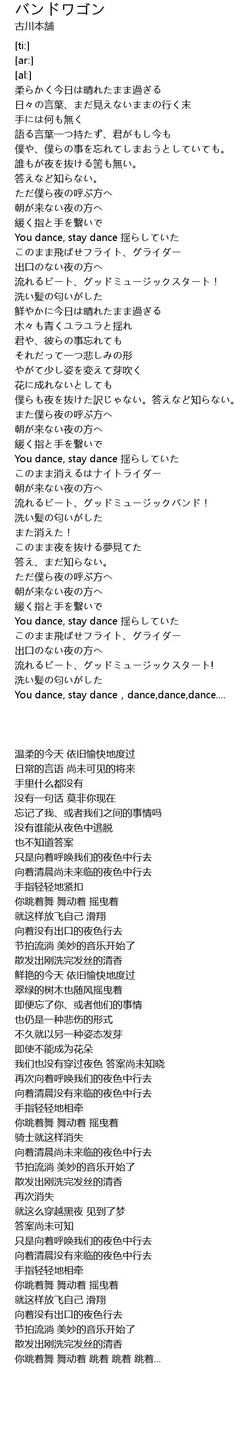 | [03:10.72] | 流れるビート、グッドミュージックバンド! |