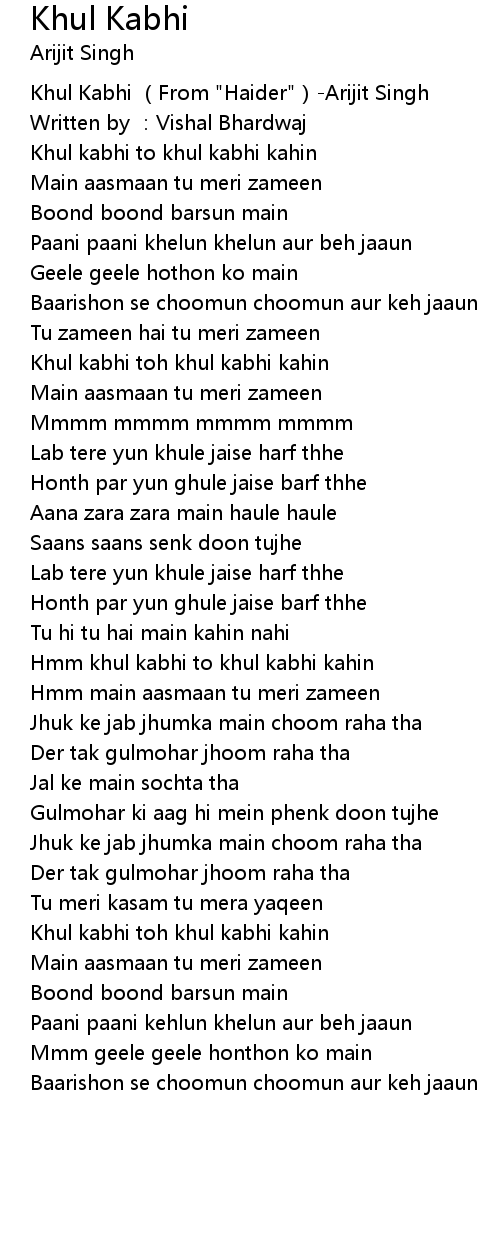 | [00:00.307] | Khul Kabhi From " Haider" Arijit Singh |