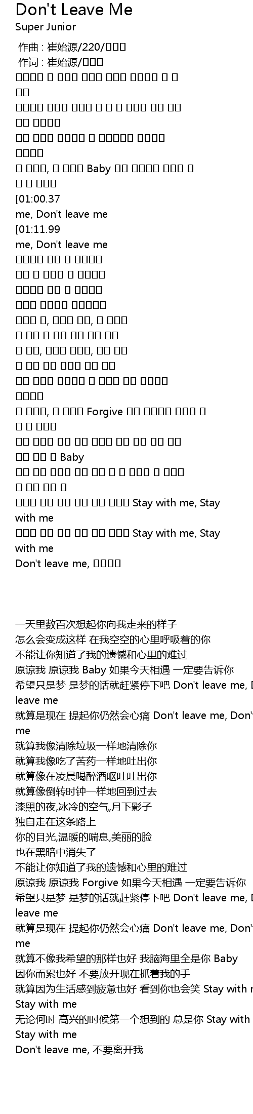 | [02:15.66][01:00.37] | Don' t leave me, Don' t leave me |