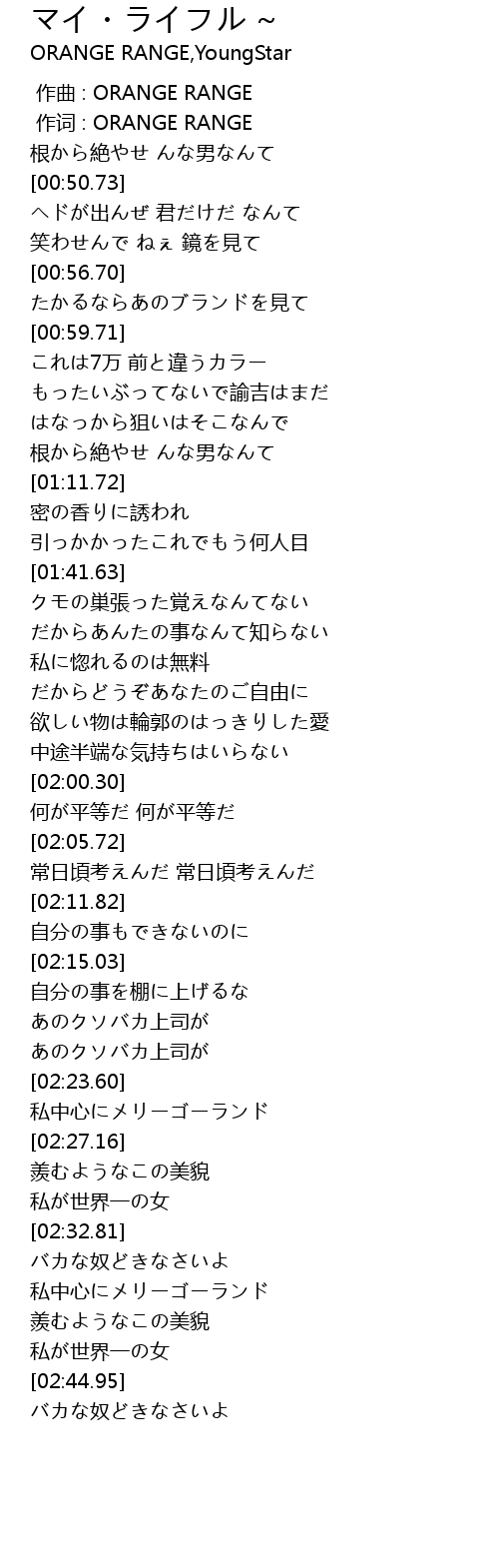 | [00:01.00] | 作词 : ORANGE RANGE |