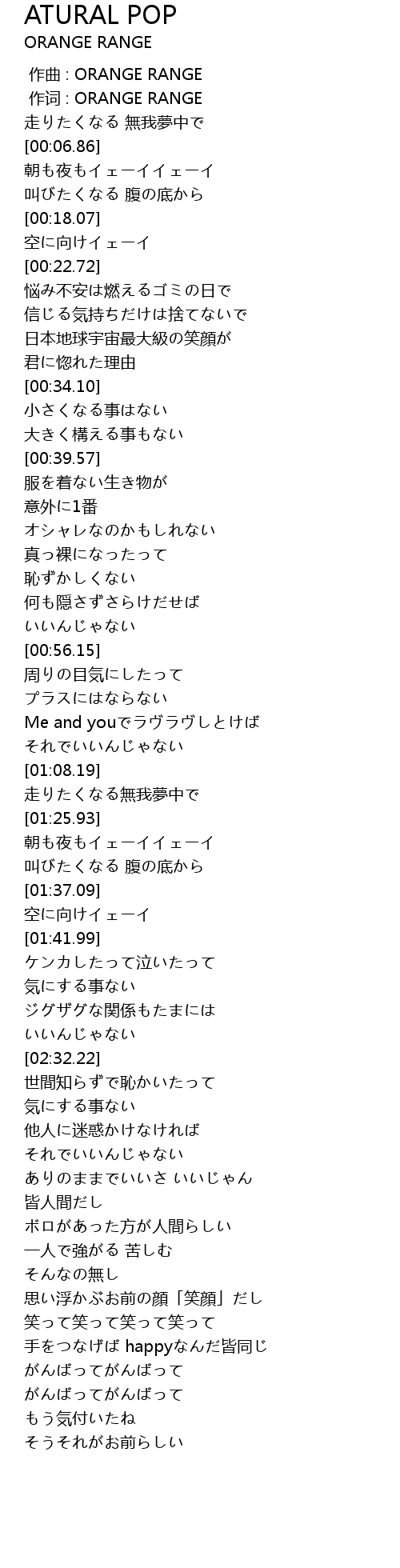 | [00:00.28] | 作词 : ORANGE RANGE |