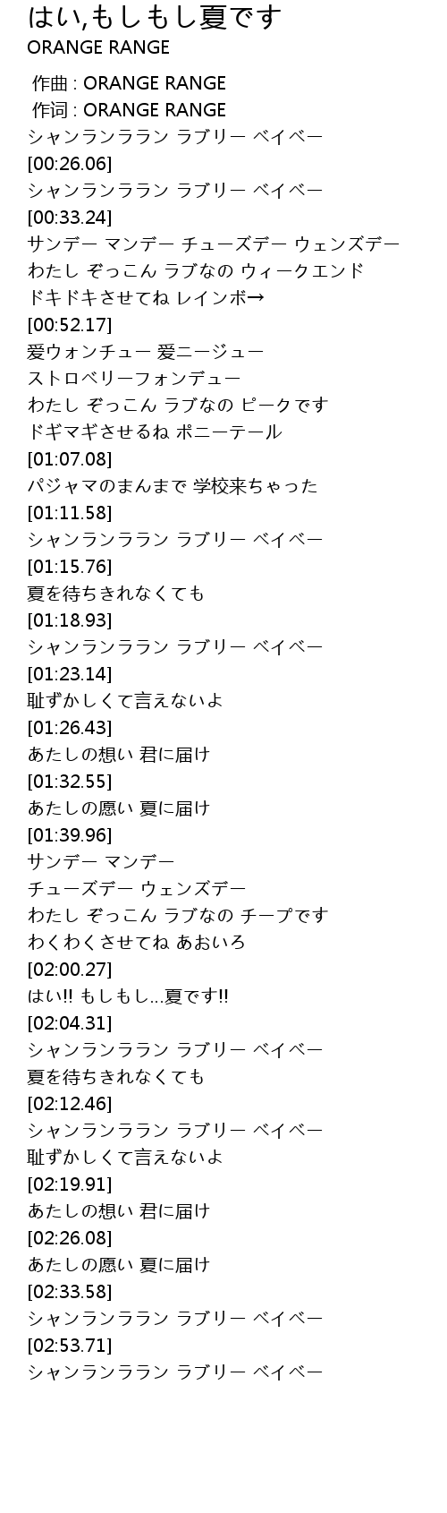 | [02:02.16] | はい!! もしもし…夏です!! |