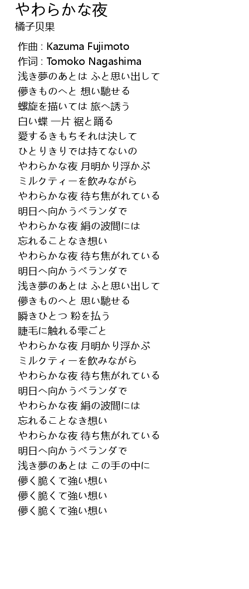 [01:05.947] やわらかな夜 月明かり浮かぶ