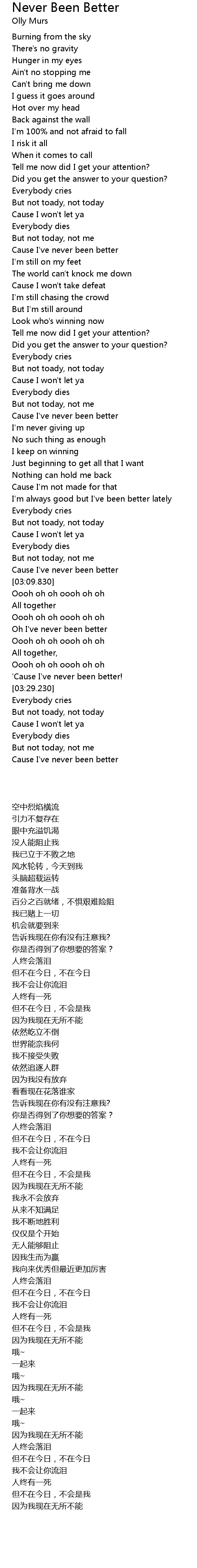 Oh I've never been better |