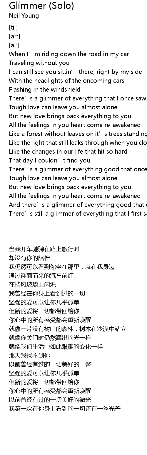 | [00:51.25] | There' s a glimmer of everything that I once saw in you |