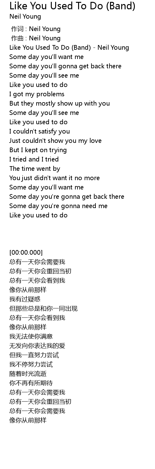 | [00:00.000] | Like You Used To Do (Band) - Neil Young |