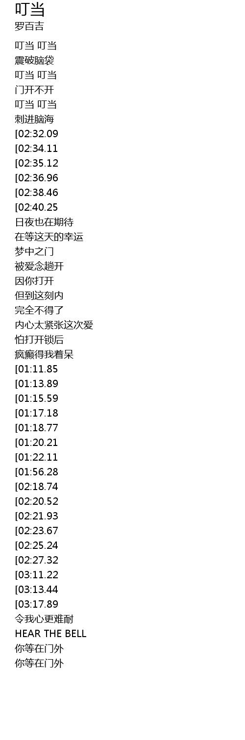 | [02:58.15][02:32.09][01:39.11] | 叮当 叮当 |