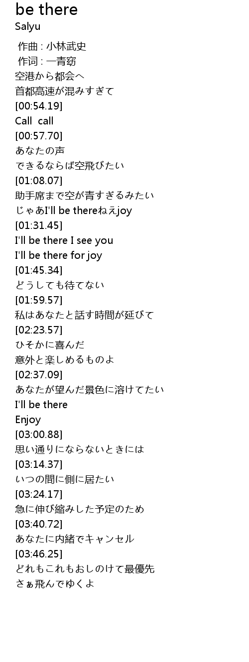 | [01:22.66] | じゃあI'll be thereねえjoy |
