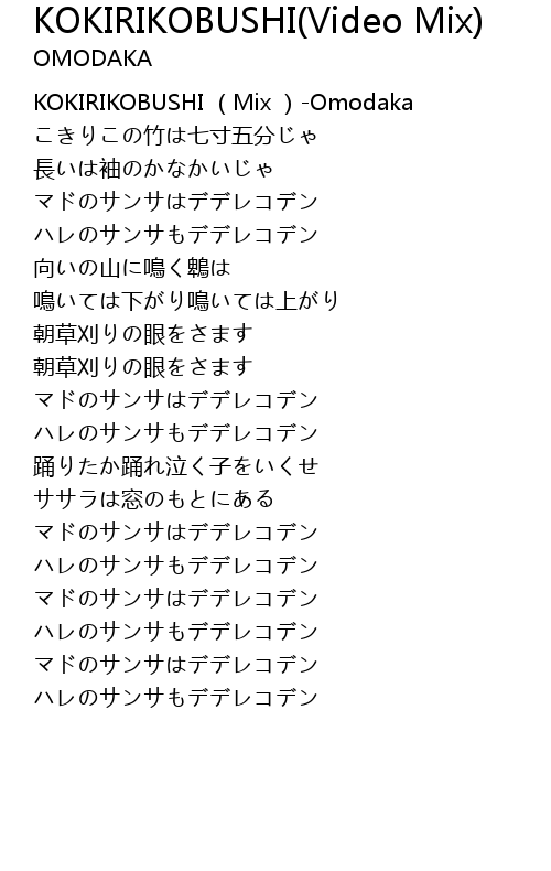 | [00:00.00] | KOKIRIKOBUSHI Mix Omodaka |