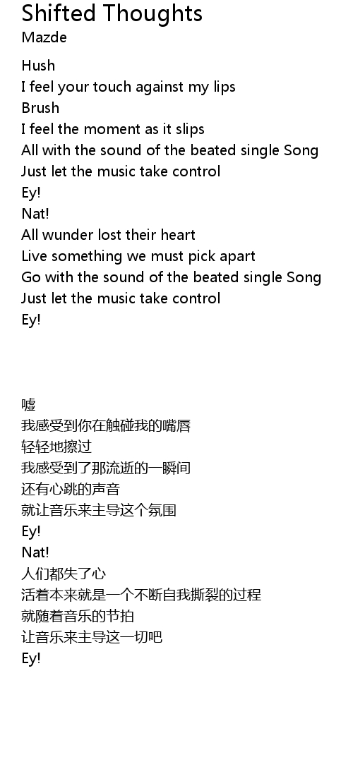 | Song | Shifted Thoughts |