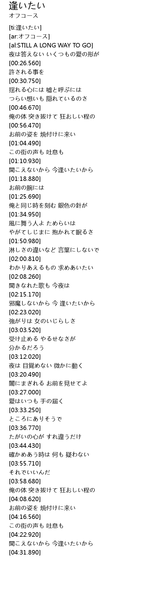 | [04:24.620] | 聞こえないから 今逢いたいから |