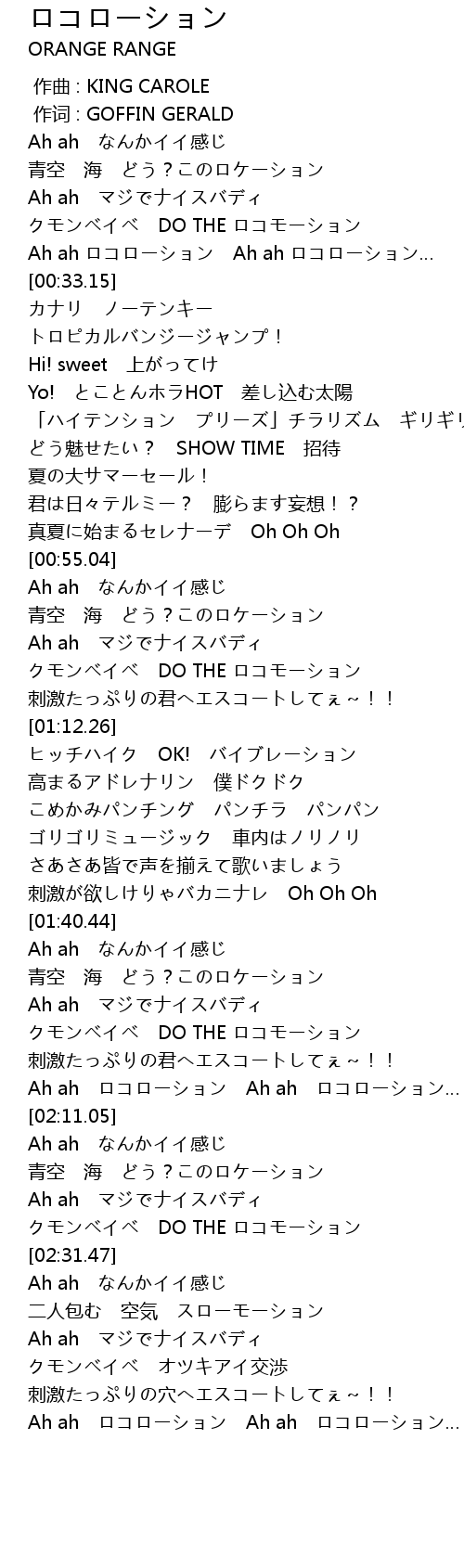 | [02:53.21] | Ah ah ロコローション Ah ah ロコローション… |