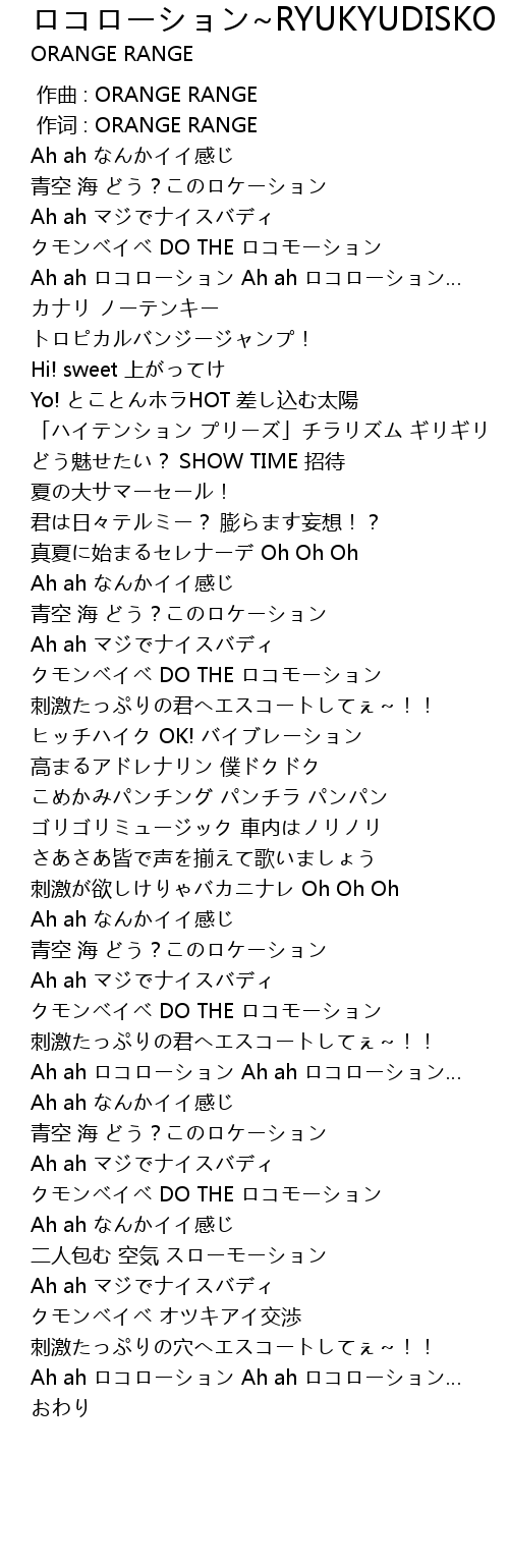 | [00:01.00] | 作词 : ORANGE RANGE |