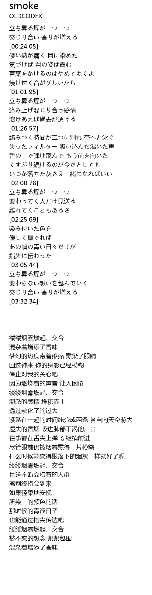 | [02:00.99] | 立ち昇る煙が一つ一つ |