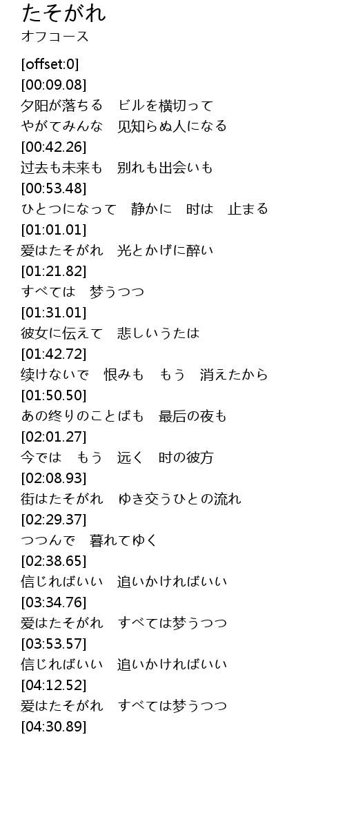 | [02:12.80] | 街はたそがれ ゆき交うひとの流れ |
