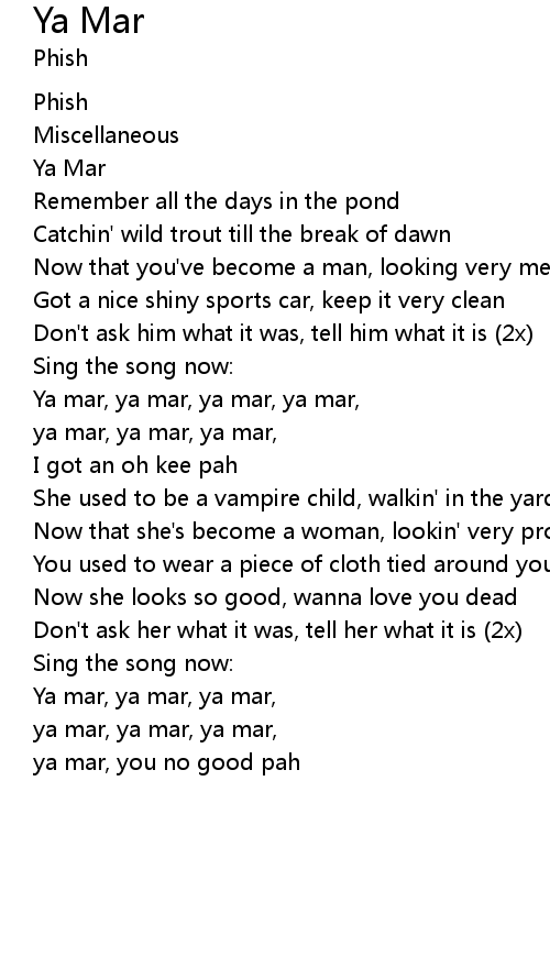 Ya mar, ya mar, ya mar, ya mar, |