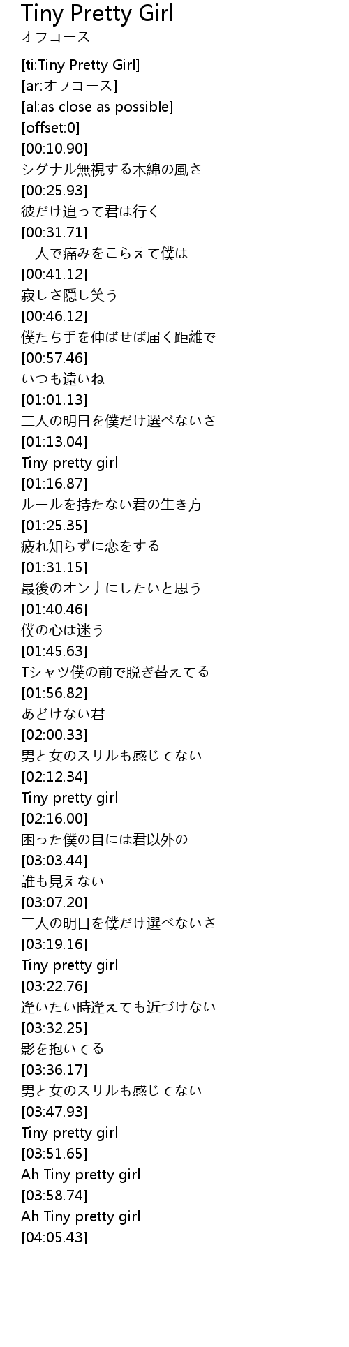 | [00:20.06] | シグナル無視する木綿の風さ |