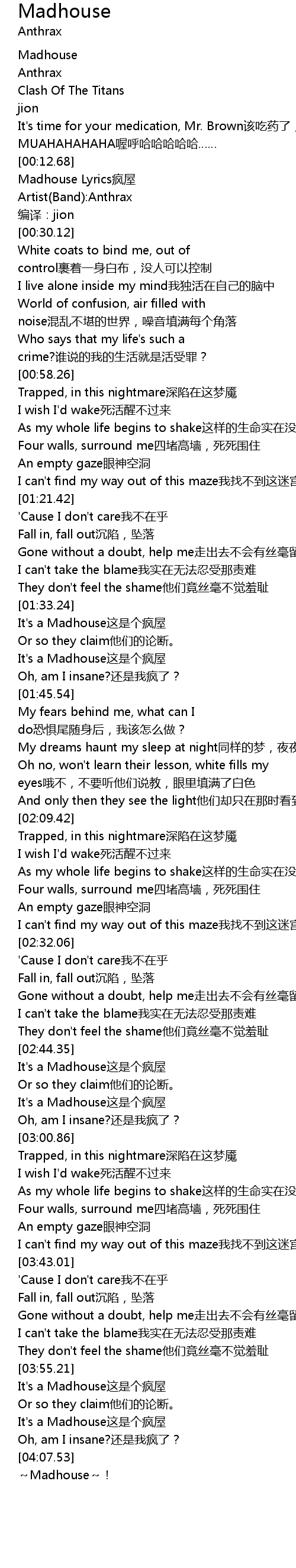 | [04:02.02] | It's a Madhouse这是个疯屋 |