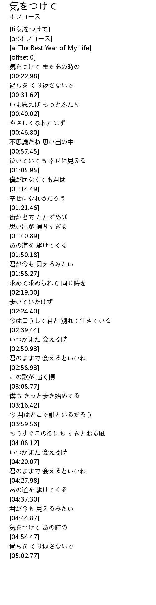 | [04:47.29] | 気をつけて あの時の |
