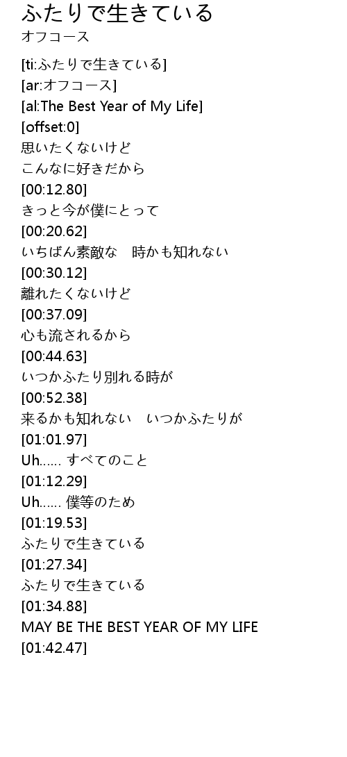 | [01:38.06] | MAY BE THE BEST YEAR OF MY LIFE |