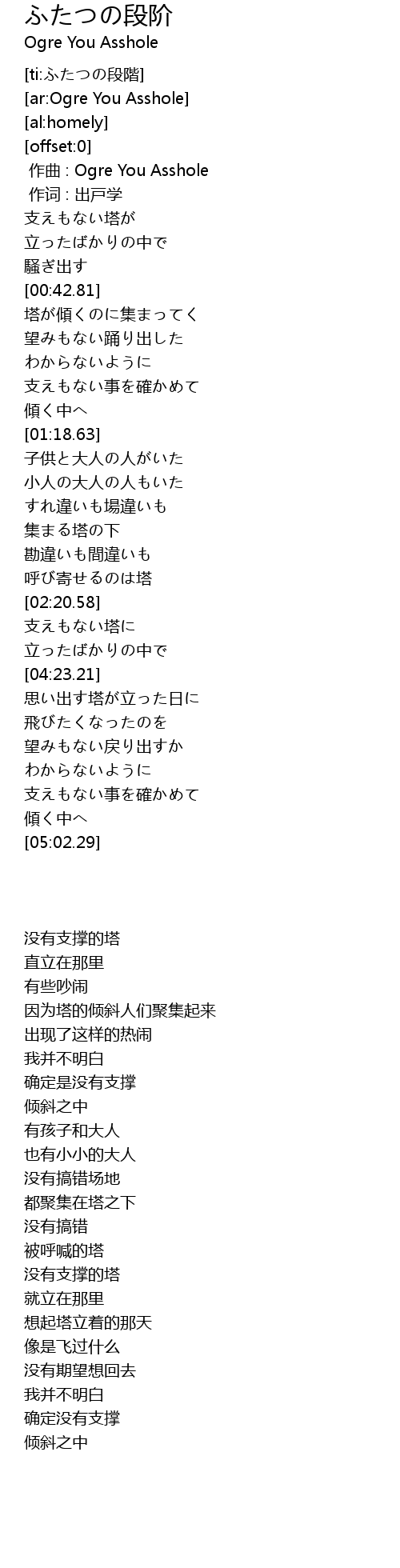 | [00:00.00] | 作曲 : Ogre You Asshole |